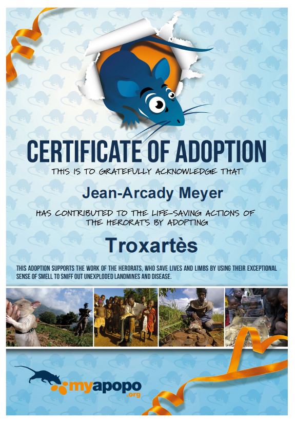 … et je l’ai appelé Troxartès. Cet animal intelligent va être entraîné à détecter et à signaler la présence de mines et devrait contribuer à sauver des vies.